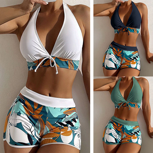 Hängender Hals-Bikini mit mehrfarbigem Dreipunkt-Badeanzug für heiße Quellen